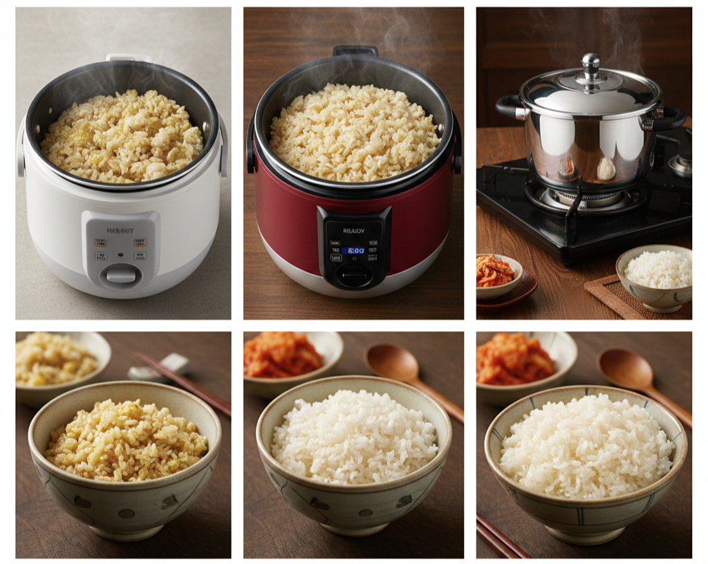 🍚 1. 일반 전기밥솥 (열판 비압력 방식): 뭉치고 냄새나는 이유
