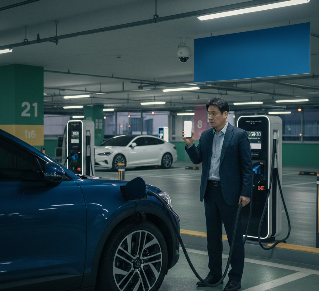 가장 안전한 방법은 충전 종료 알림이 오기 5~10분 전에 미리 이동하는 것입니다. 공영주차장은 전기차 주차 요금 감면 혜택(보통 50~100%)이 있으니, 충전기 앞이 아닌 일반 주차 구역으로 차를 옮기시는 것이 가장 현명한 방법입니다.