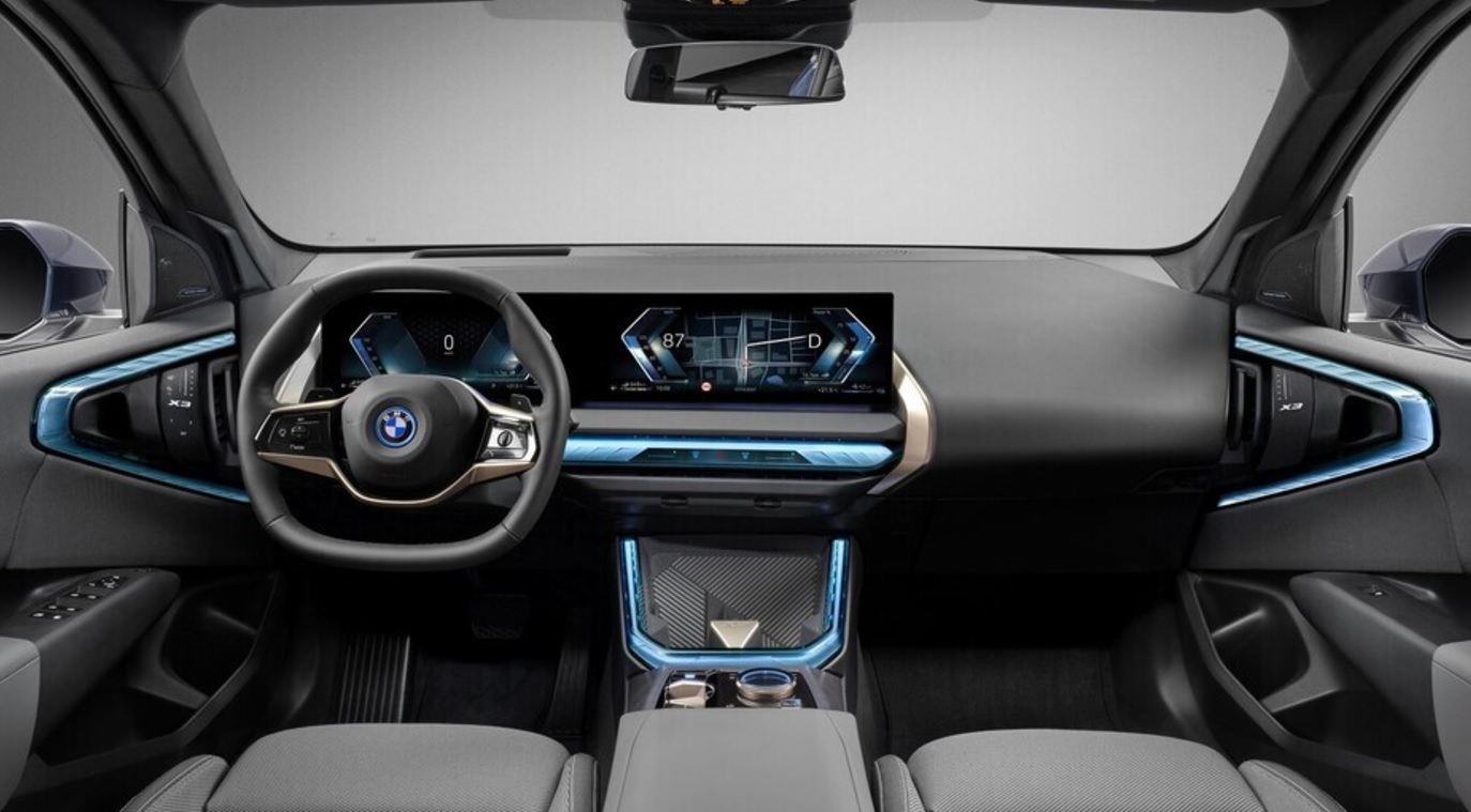 2025 X3의 가장 큰 변화는 실내 디지털화입니다. 전세대의 아날로그 버튼 중심 디자인에서 탈피해, 커브드 디스플레이(Curved Display)를 적용했습니다. 이 디스플레이는 12.3인치 계기판과 14.9인치 중앙 터치스크린으로 구성되어 BMW iDrive 8.5 시스템을 지원합니다. - 프리미엄 소재와 마감